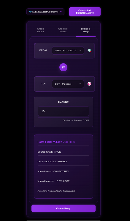 - 🔍 Swap DOT to KSM and shield it for privacy